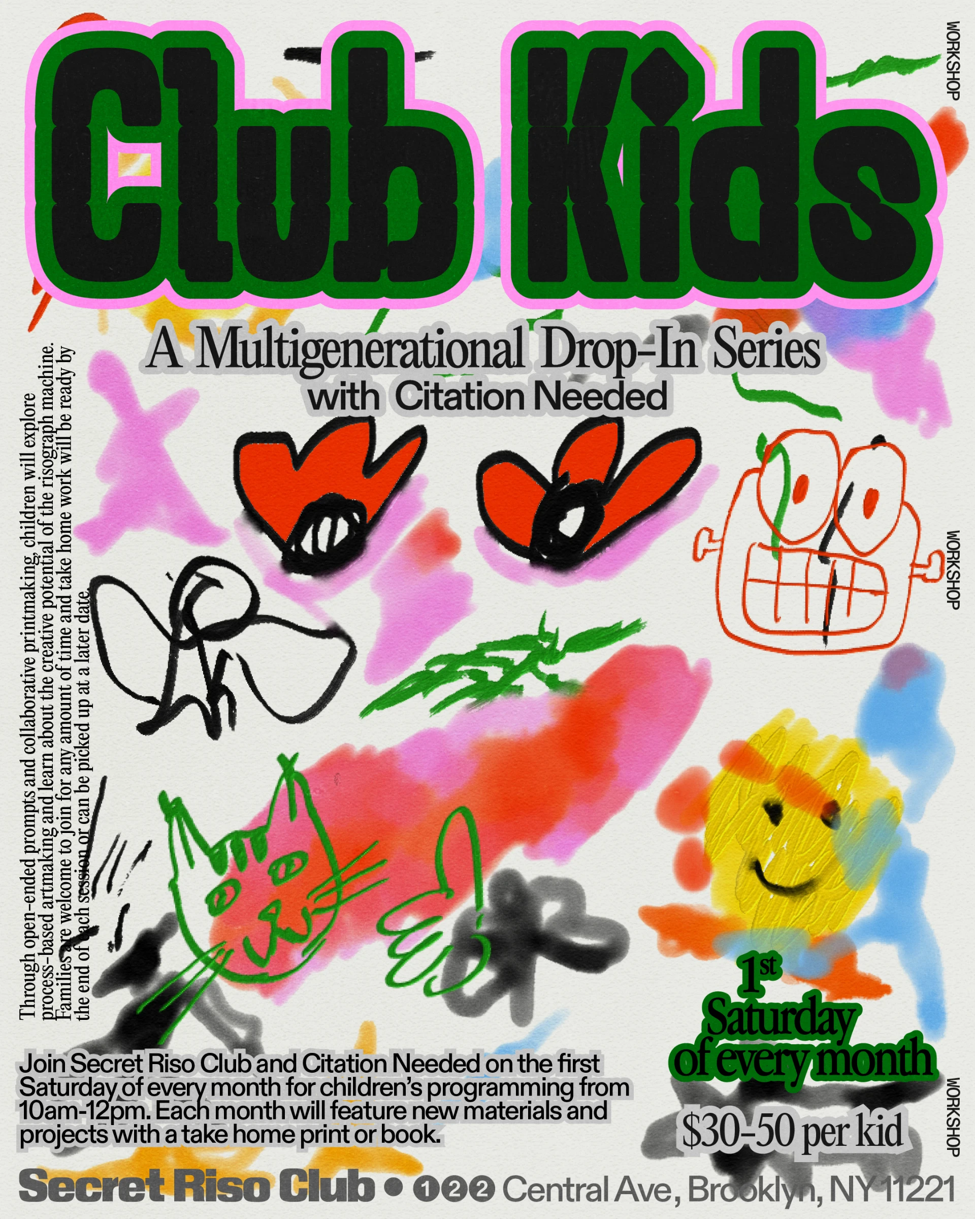 Sliding scale - $30 - $50 per participant, pre-register or drop-in. All classes held in person with all materials provided at Secret Riso Club in Bushwick.