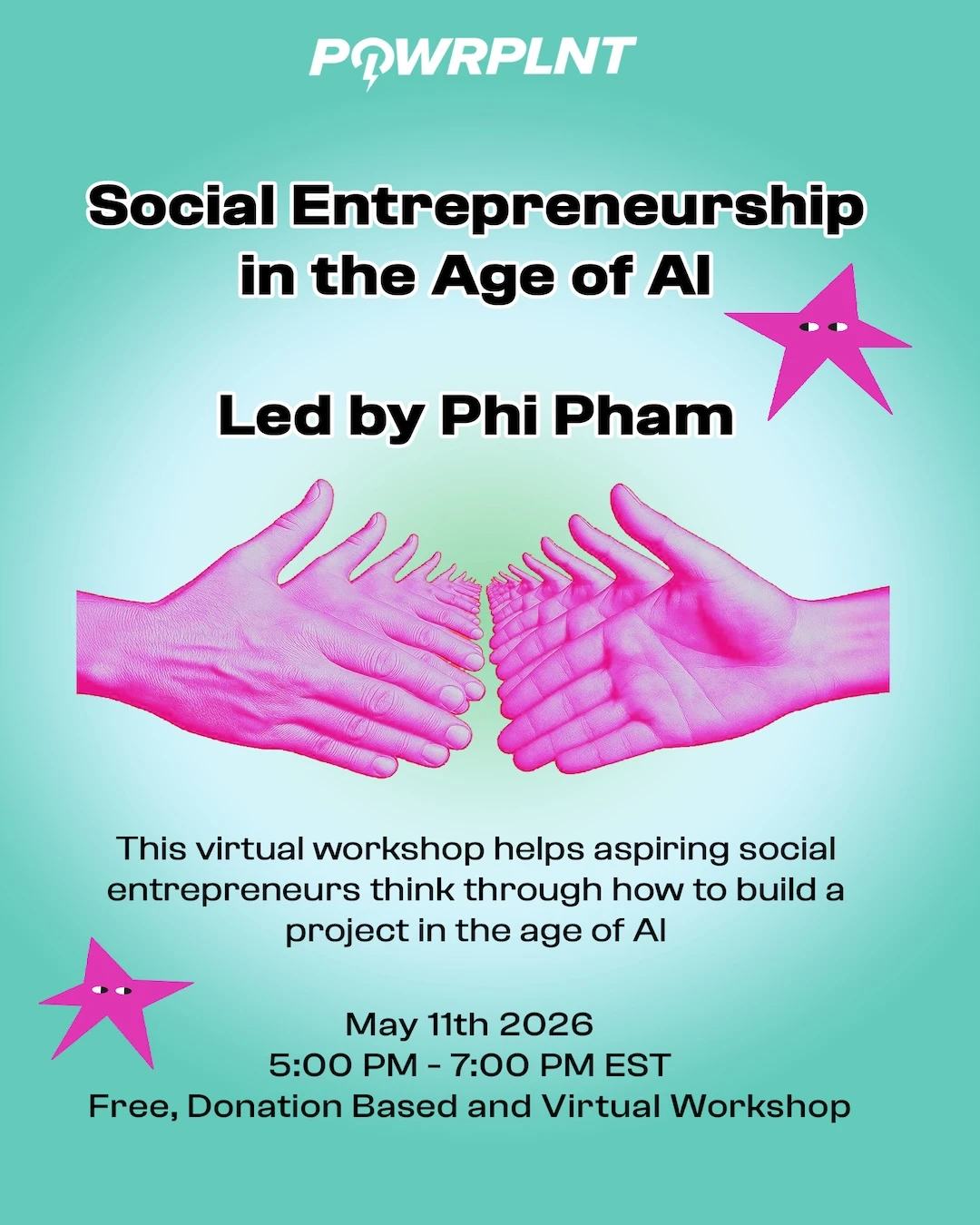 This virtual workshop helps aspiring social entrepreneurs think through how to build a project in the age of AI. Students work on their own venture ideas while exploring both the tactical possibilities — using AI to help with admin and operations, reach more people, personalize programs at scale, and punch above their weight — and the real tradeoffs: algorithmic bias hitting marginalized communities hardest, data privacy, energy costs, labor displacement, and erosion of authentic community connection